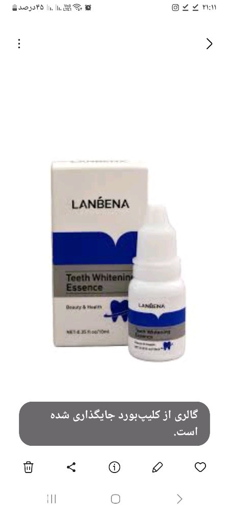 روش استفاده: با گوش پاک کن داخل جعبه از محلول روی دندان ها زده و کمی روی دندان می کشید بعد دهان را با آب بشورید مراقب باشید زیاد با لثه تماس نگیرد و بیش از دو بار در ماه استفاده نکنید