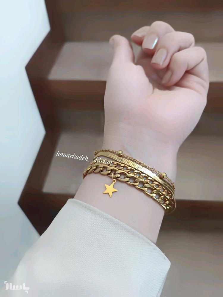 دستبند چهار ردیفه استیل کارتیر وماری و خلخال با آویز ستاره طلایی