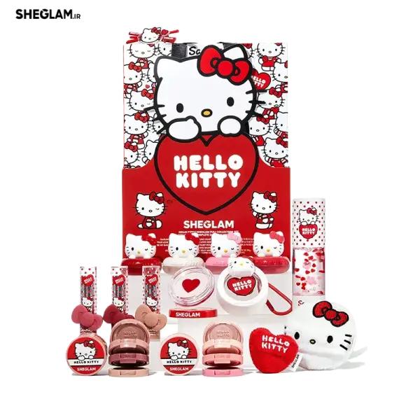 پک آرایشی جدید هلو کیتی شیگلم (Hello Kitty|SHEGLAM Full Collection New Set) کالکشن جدید با طراحی قرمز و سفید از برند شیگلم است که در همکاری با شخصیت محبوب هلو کیتی (Hello Kitty) با الهام از تمهای عاشقانه و طراحیهای کیوت، شامل محصولات متنوعی برای آرایش صورت، لبها و چشمها میباشد که شامل رنگ های مات و براق با ماندگاری بالا می باشد. محتویات این پک آرایشی شامل پالت سایه چشم 8 رنگ، لیپ گلاس، پرایمر طرح کیتی، رژگونه کرمی، بادی میست، مداد چشم و یک عدد عینک آفتابی طرح کیتی می باشد.