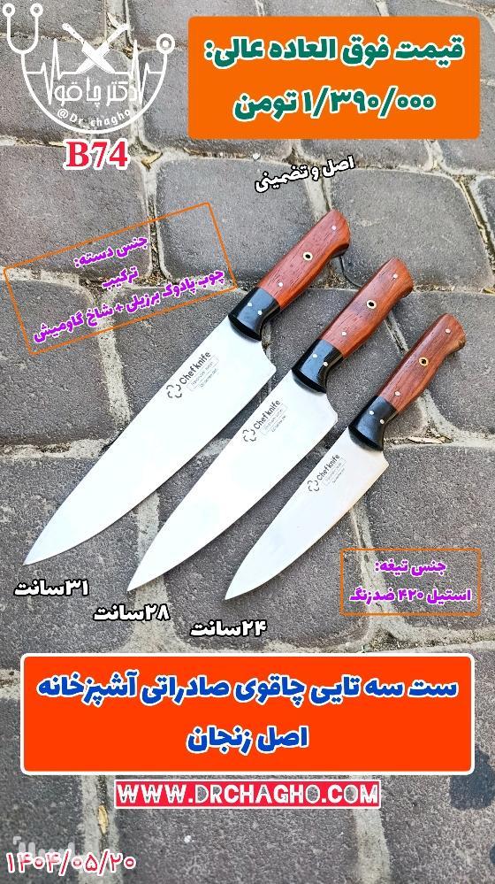ست 3تایی چاقو آشپزخانه صادراتی سفارشی اصل زنجان