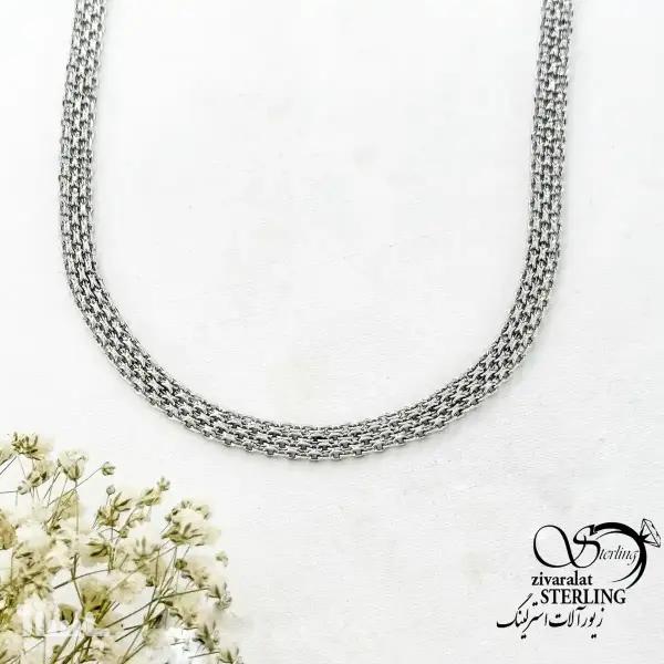 زنجیر (گردنبند) استیل سفید طرح حصیری کد 20181