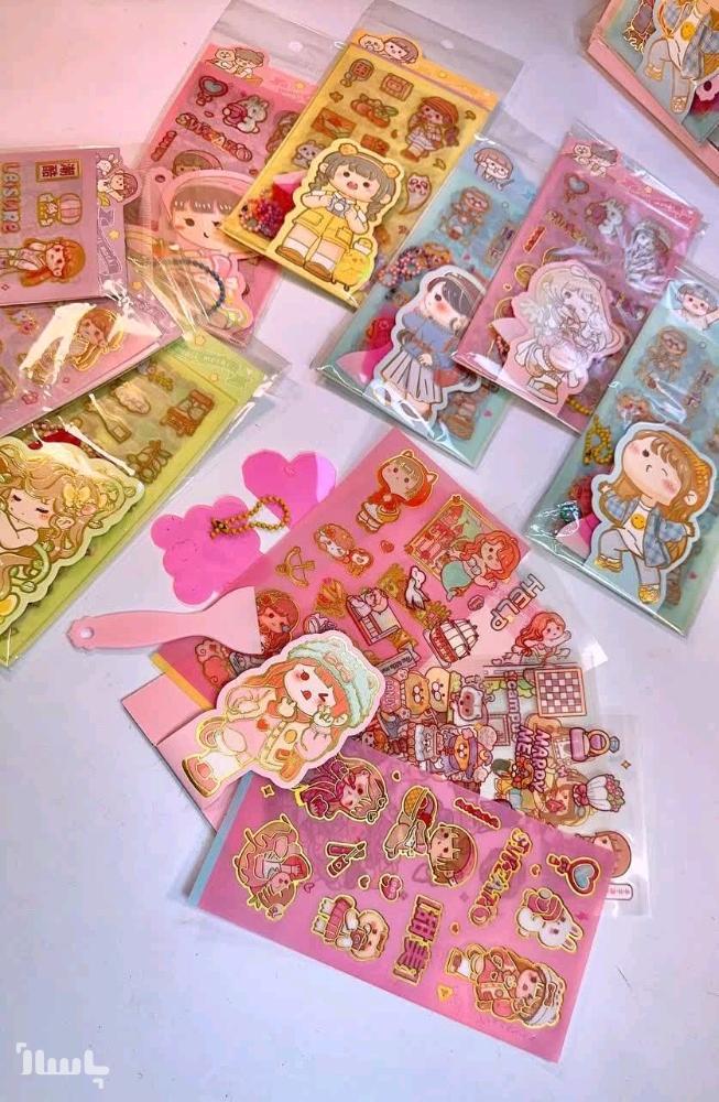 دارای 4 برگه استیکر شفاف و 2 برگه استیکر مات و یک عدد کاردک.