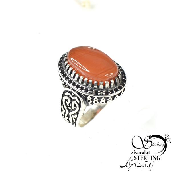 انگشتر نقره مردانه عقیق نگین بیضی سیاه قلم کد 8639