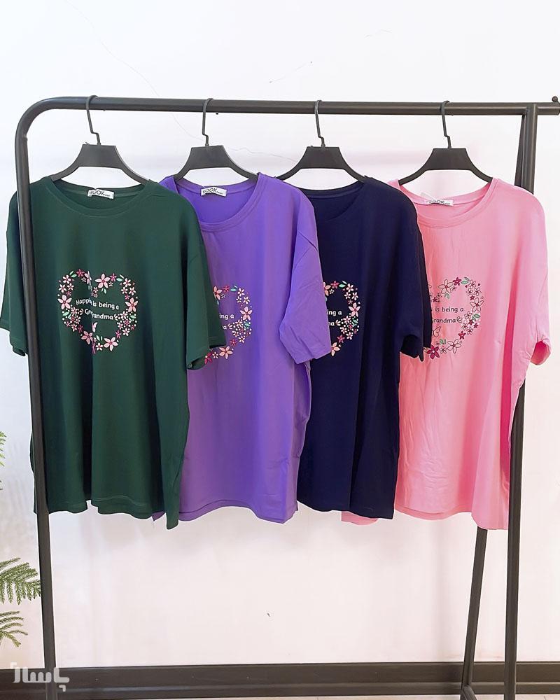 تیشرت ویسکوز قواره بزرگ نیم آستین قلب گل