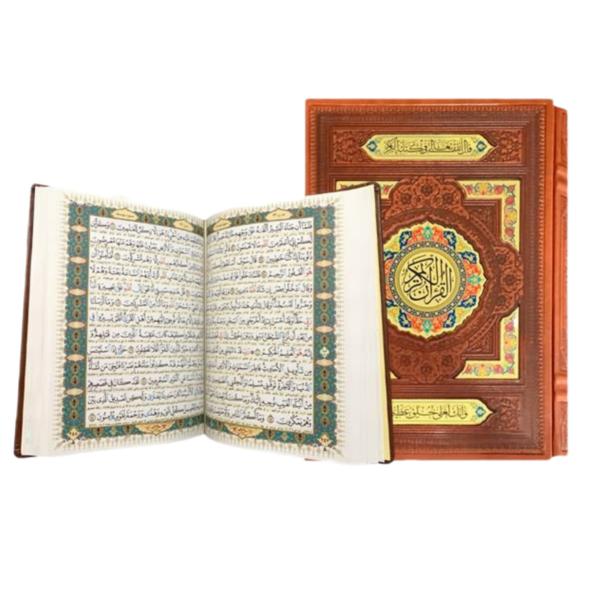 کتاب نفیس قرآن کریم چرمی همراه با قاب کشویی پلاکدار