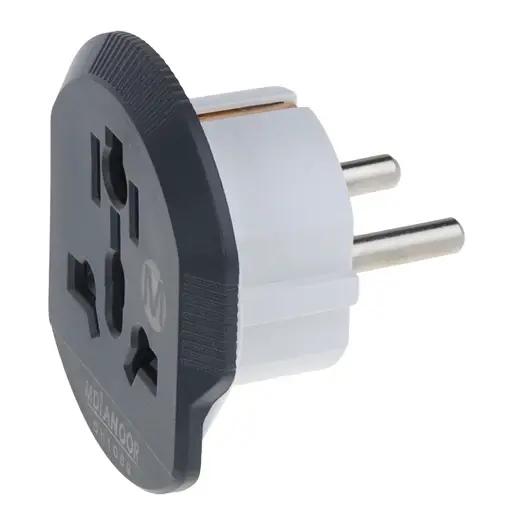 مبدل دیواری مدیانور که تحت عنوان مبدل برق 3 به 2 مدل sh1059 به بازار عرضه میشود. این محصول یک ورودی دارد که برای اتصال دوشاخههای تیغهای و سهشاخهها مورد استفاده قرار میگیرد. این مبدل با بدنهای پلاستیکی دارای حداکثر جریان انتقالی 30 آمپر است. بیشتر ابزارهای برقی، انرژی مورد نیاز خود را از طریق چندشاخههای متصل به سیم و کابل تامین میکنند. برای این کار باید این چندشاخهها را به پریز برق متصل کرد. در بسیاری از مناطق، پریزهایی با شکل ظاهری خاص متداول هستند و مورد استفاده قرار میگیرند؛ از سویی دیگر صادرات تجهیزات برقی ممکن است این مشکل را ایجاد کند که چندشاخهی دستگاه، با پریز سازگار نبوده و نتوان آن را به پریز متصل کرد. بهترین و ارزانترین راه برای حل این معضل، استفاده از تبدیلهاست. مبدلهای چندشاخهها دارای ورودی و خروجیهای مختلفی هستند. یکی از کاربردیترین مبدلها در ایران تبدیل 3 به 2 است. این محصولات با کمک دوشاخهای که دارند، به پریز برق متصل میشوند و برق را برای اتصال دوشاخهها و سهشاخهها مهیا میکنند