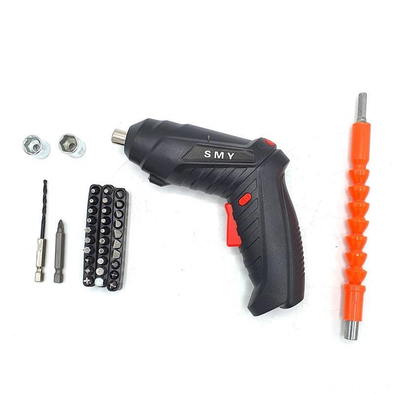 این دریل پیچ گوشتی شارژی تفنگی 4.2 ولت، مجهز به باتری قوی جهت اثربخشی بیشتر و عمر طولانیتر است. این دستگاه قابلیت چرخش بدنه دارد به طوریکه به صورت مستقیم هم قابل استفاده است. این ابزار دارای 34 عدد نوک پیچگوشتی کاربردی، یک عدد رابط منعطف، دو عدد مته چوب، یک عدد رابط نوک خور و 8 عدد بکس 1/4اینچ است که از مواد اولیه مناسب ساخته شدهاند. این پیچ گوشتی برای استفاده در صنایع الکترونیک، کامپیوتر، مکانیک و مصارف عمومی مناسب است. پیچ گوشتی شارژی اس ام وای مدل 4.2v مجهز به سیستم ابزارگیر منحصر به فرد با گیرایی بسیار قوی حین کار است،