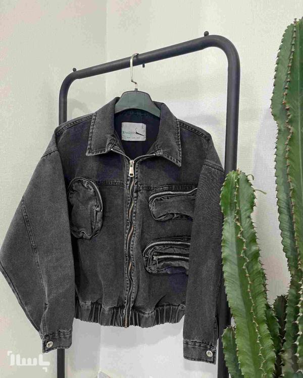 کت جین کارگو زغالی ترک کمرکش قد 55