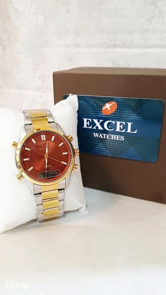 ساعت مچی مردانه دوزمانه EXCEL اکسل مدل EX-6245 دورنگ صفحه قرمز