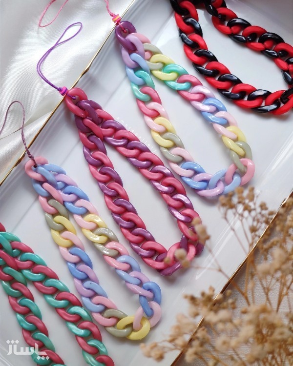 آویز موبایل و بند موبایل کارتیر رنگی فانتزی جنس اینکار پلاستیکی می باشد و طول تقریبی بند 20 سانت