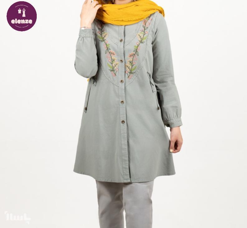 مانتو الیاف طبیعی گلدوزی اسپرت دانشجویی مدل دیبا