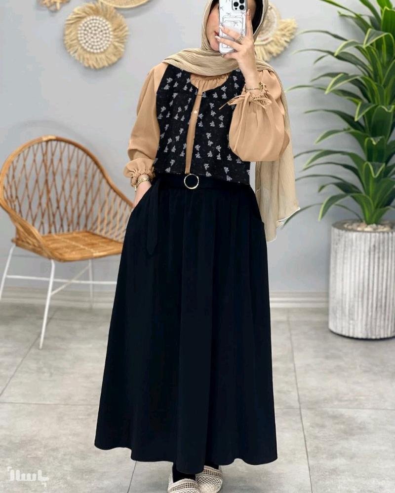 جنس : دامن مازراتی، شومیز الیزه ،جلیقه گل گچی