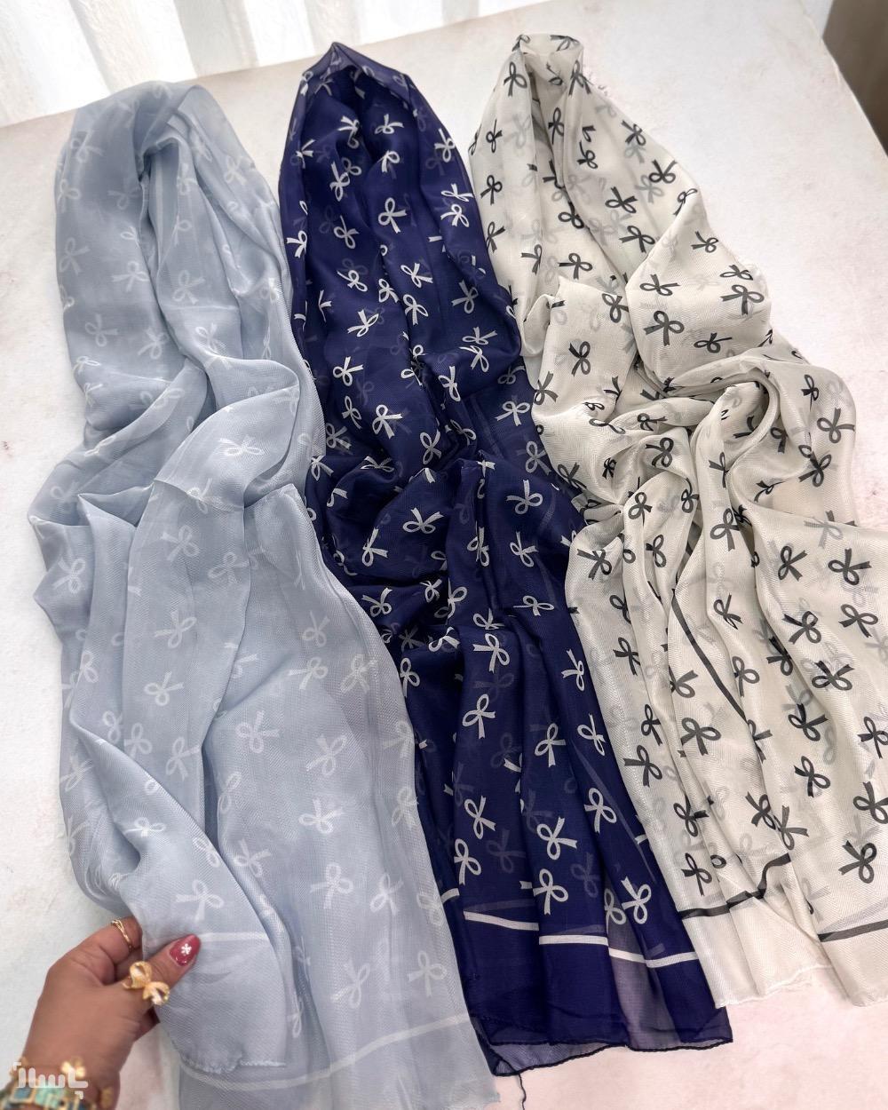 شال حریر شیفون وارداتی طرح پاپیون رنگبندی زیبا