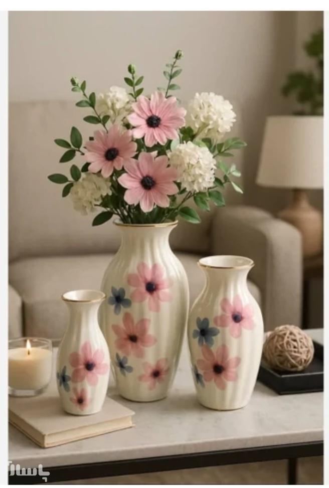 گلدان سرامیکی گل بهاری لب طلا 3 عددی