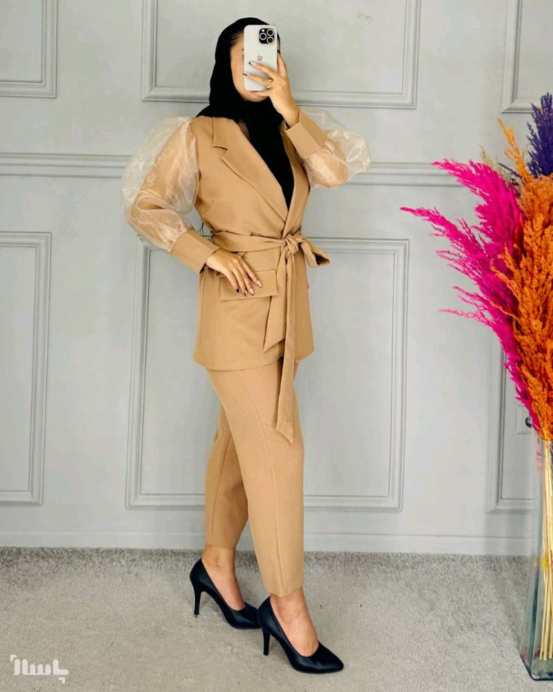 جنس : مازراتی درجه یک آستین تورارگانزو درجه یک سایز(1)36-38-40 سایز(2)42-44 سایز(3)46-48 قد شلوار 90. کمرشلوار کش دارد شلوارزیپ از بغل میخوره قد آستین. 55 قدبلیز 70
