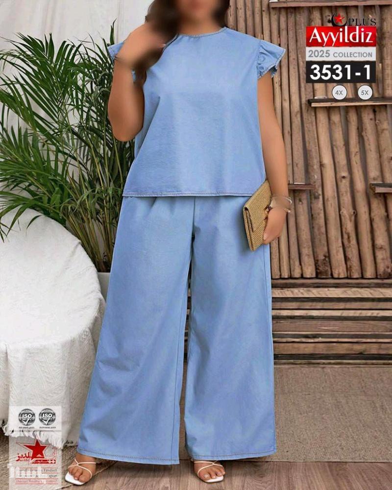 ست شومیز شلوار لی شسته شده بیگ سایز3531