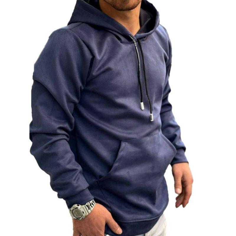 هودی مردانه کلاه دار مخمل سوییت سرمه ای