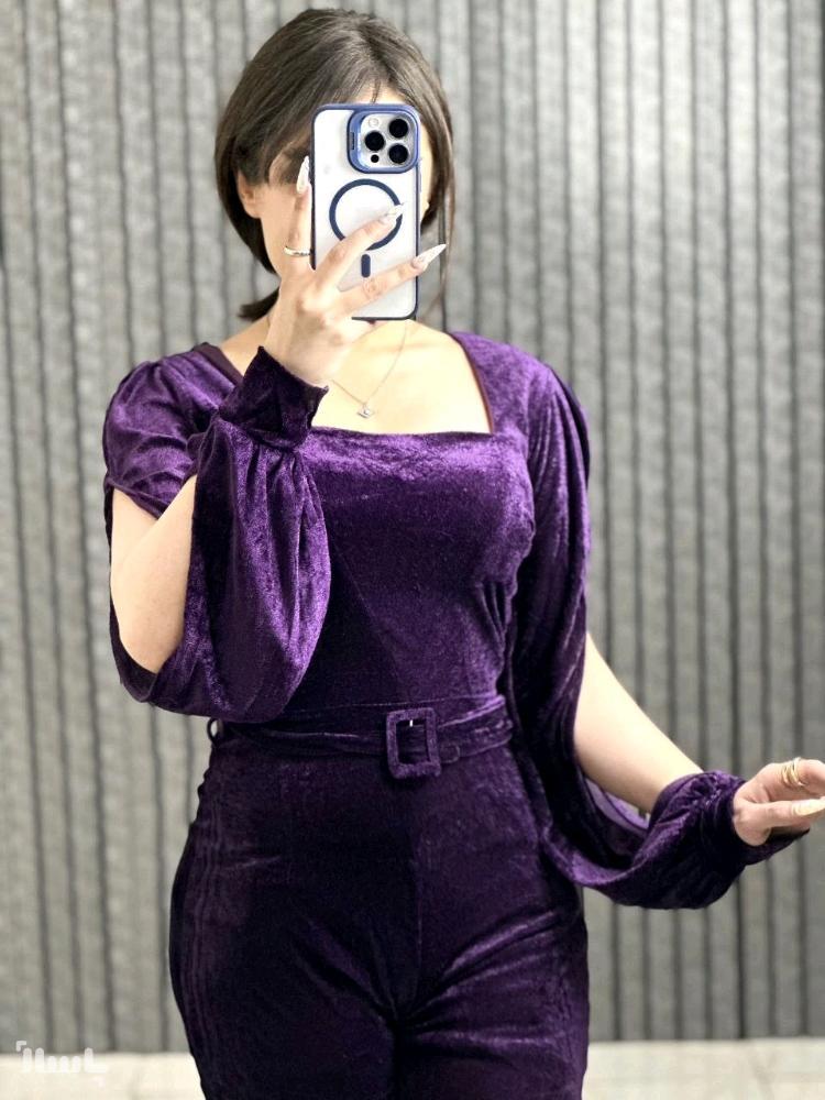 سرهمی زنانه مخمل بهاره مدل اورال نارین باکمربند