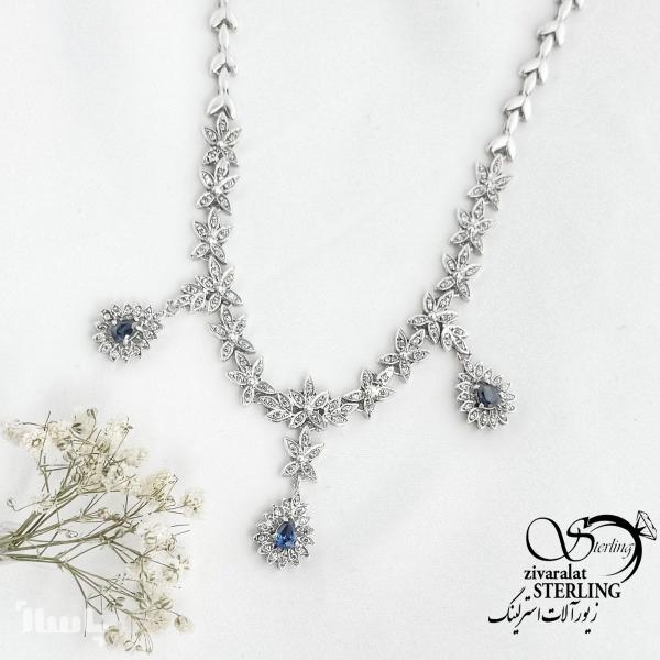 گردنبند زنانه نقره آویز اشکی سنگ یاقوت کبود ساخت ایتالیا کد 16810
