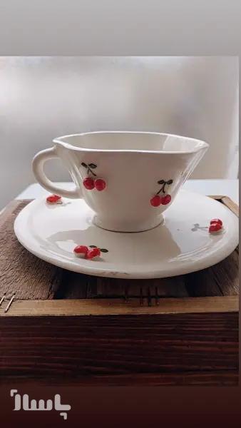 فنجان نعلبکی آلبالو برجسته | ترکیبی از ظرافت و کاربرد