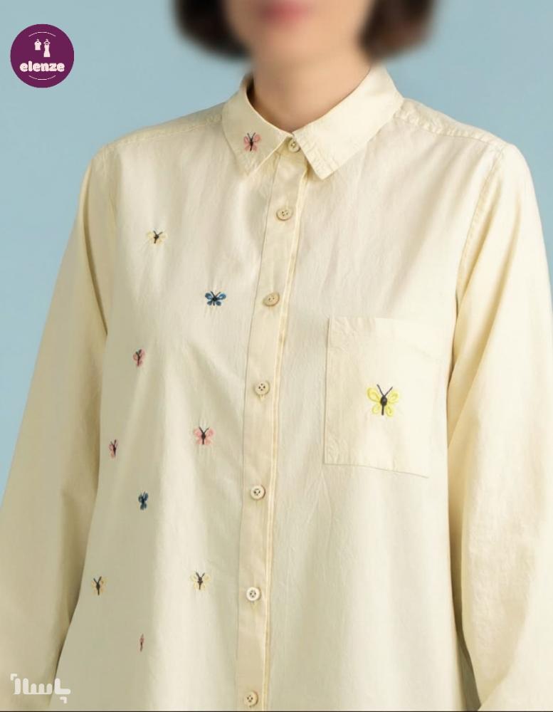 مانتو شومیزی زنانه الیاف طبیعی گلدوزی پروانه
