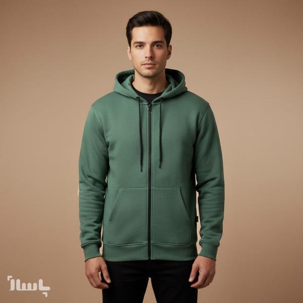 سویشرت دورس کلاهدار زیپی سهنخ پنبه داخل کرک رنگ سبزصدری – گرم، راحت و باکیفیت