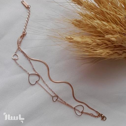 دستبند سه لاین قلب استیل - رنگ ثابت