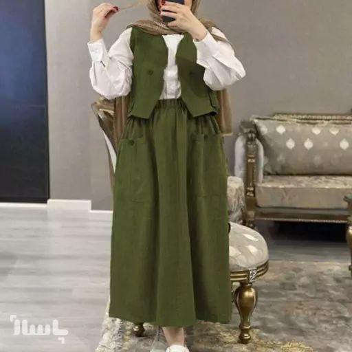 جنس : شومیز داکرون جلیقه و دامن شانتون