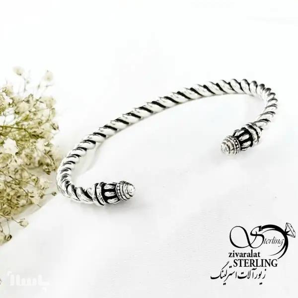 دستبند النگویی بنگل مردانه طرح طنابی عیار925 کد 20232
