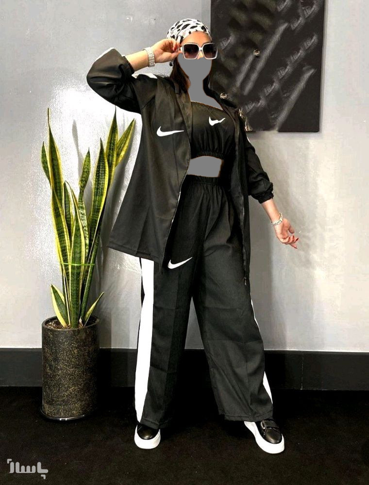 مانتو شلوار زنانه میکرو مدل ست نایک مشکی (دوتیکه)
