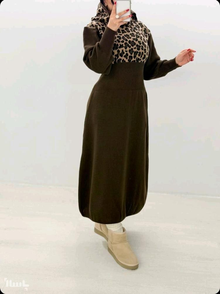 ️لانگ بافت کلاه دار پلنگی برند