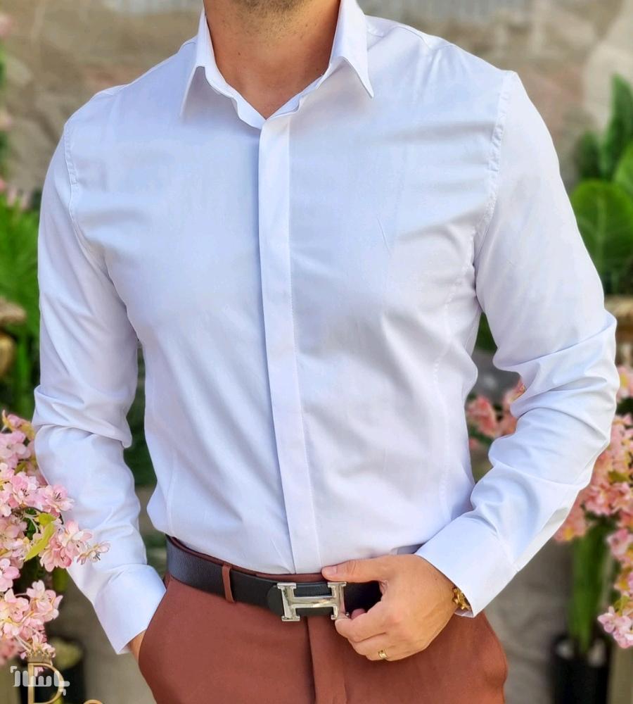 پیراهن سفید مجلسی دکمه مخفی مردانه پارچه دوشین XL