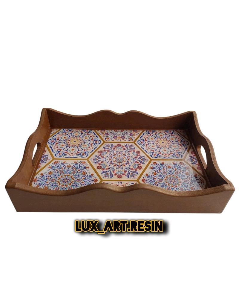 کف سینی با یک لایه رزین و طرح سنتی کار شده