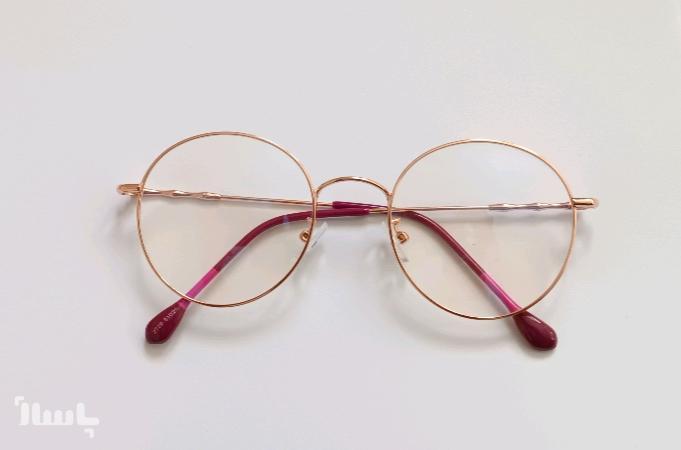 عینک طبی گرد عینک طلایی رنگ با قابلیت تعویض عدسی های جدید نمره دار بسیار ظریف و سبک