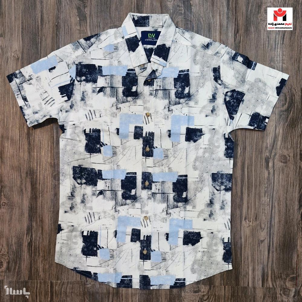 پیراهن آستین کوتاه طرح دار اندامی مردانه سایزm-2xl