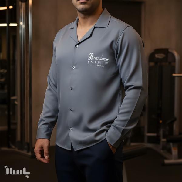پیراهن مردانه مازاراتی آستین بلند رنگ طوسی