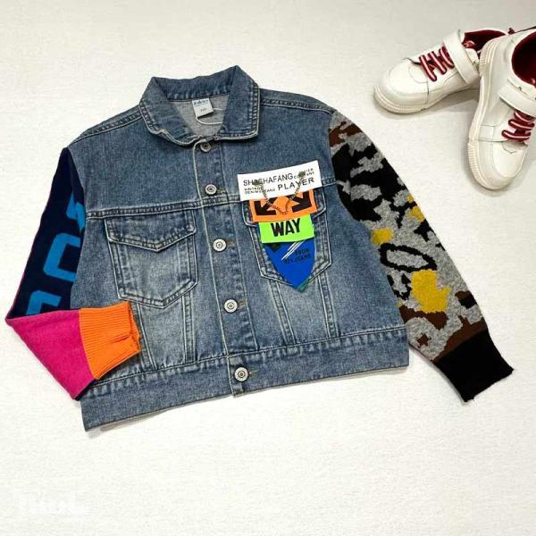 کت جین دخترانه آستین بافت طرحدار وارداتی مناسب 2 تا 5 سال