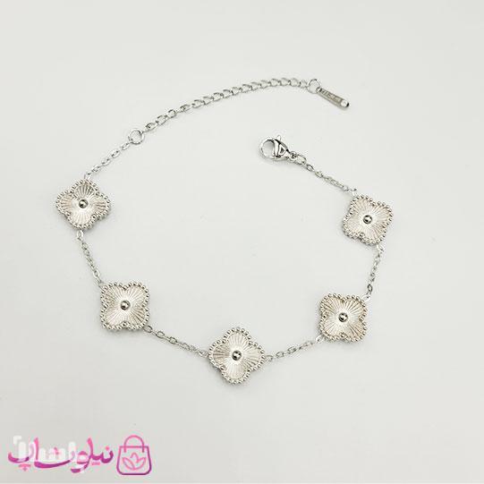 خرید دستبند زنانه مدل ونکلیف نقره ای استیل