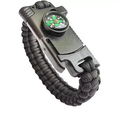 این دستبند سبک و مقاوم است و به راحتی روی مچ بسته میشود. طول طناب و ابزارهای تعبیه شده آن امکان استفاده در فعالیتهای مختلف از جمله ایجاد سرپناه، برپایی آتش، تلهگذاری، بافت تور ماهیگیری، بخیه زدن، بند آوردن خونریزی، فرود از ارتفاع و حتی به عنوان بند کفش را فراهم میکند.