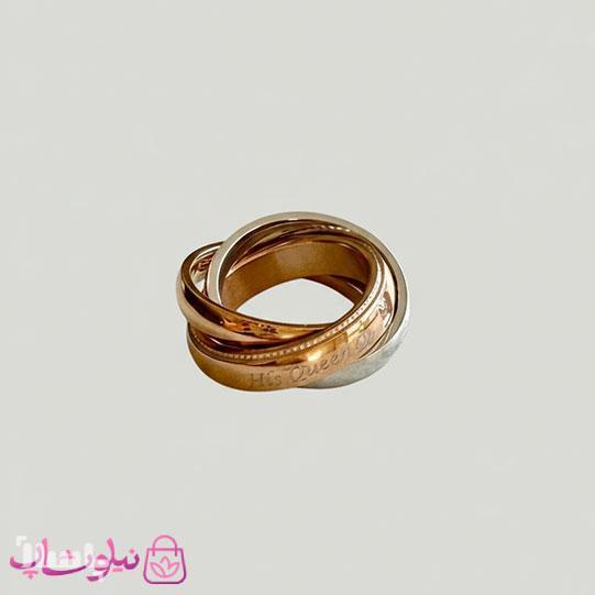 پلاک زنانه طرح سه حلقه درهم مدل his queen نقره ای رزگلد کد 250