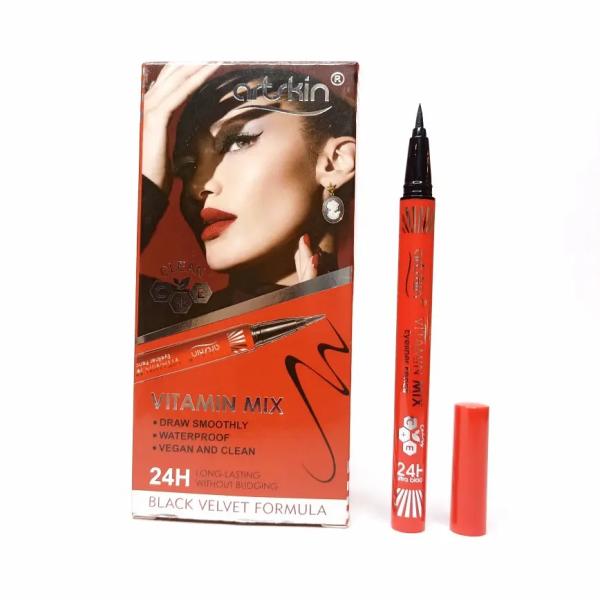 توضیحات محصول: خط چشم ماژیکی آرت اسکین VITAMIN MIX یک خط چشم ماژیکی فوق العاده پررنگ و مشکی 24 ساعته است که به شما کمک می کند تا بتوانید به سرعت خط چشمی حرفه ای برای خود رسم کنید. این خط چشم علاوه بر اینکه دارای نوک بسیار ظریف و رنگ عالی است، دارای ویتامین های C و E است که باعث می شود پوست شما دچار خشکی نشود. این خط چشم دارای رنگ بسیار مشکی و پر رنگی است که می توانید با اندکی فشار خط چشم فوق العاده ای برای خود بکشید. این خط چشم ضد آب است و با عرق کردن صورت پاک نمی شود و دچار ریزش نمی شود. بنابراین می توانید بدون نگرانی از ریختن رنگ آن یا پخش شدن رنگ آن به علت تعریق از آن استفاده کنید. برند آرت اسکین (artskin) یکی از برند های معروف لوازم آرایشی است که محصولات آن به علت داشتن کیفیت بالا و قیمت مناسب در میان بانوان طرفداران بسیاری پیدا کرده است.