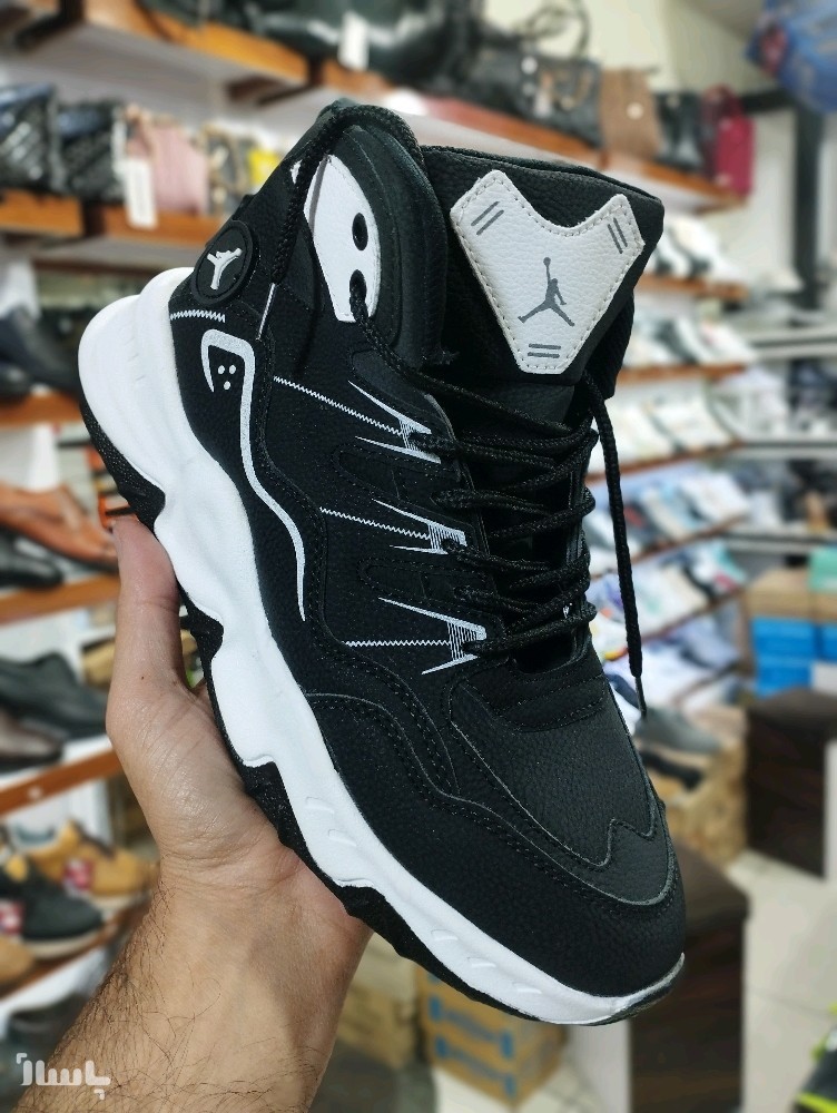 اسپرت ساق بلند جردن با زیره پیو در دو رنگ مشکی و سفید و سایز بندی 41 تا 44