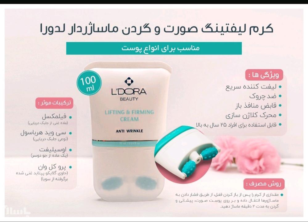 کرم لیفتینگ صورت و گردن ماساژوردار لدورا 100 میلی لیتر
