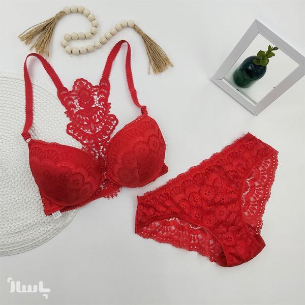 ست سوتین و شورت زنانه دانتل قرمز کد 6411