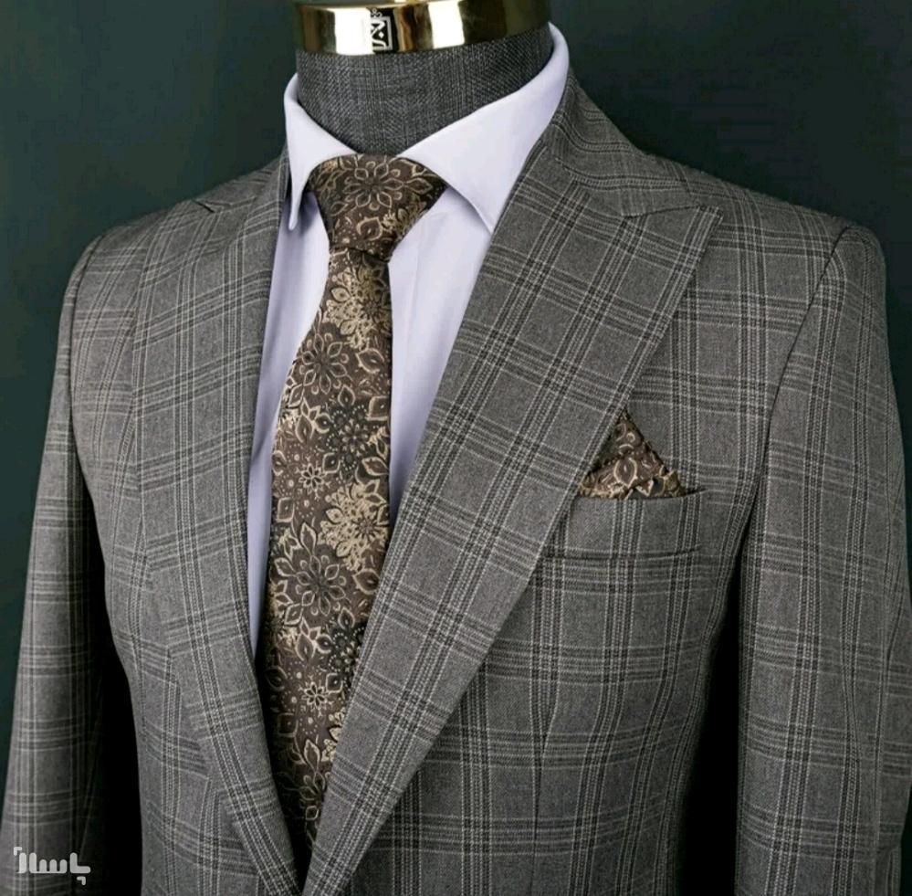 کت و شلوار فاستونی زرین چهارخانه مردانه خاکی رنگ سایز 52