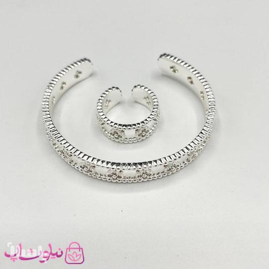 خرید ست دستبند و انگشتر زنانه مدل ونکلیف آبکاری نقره