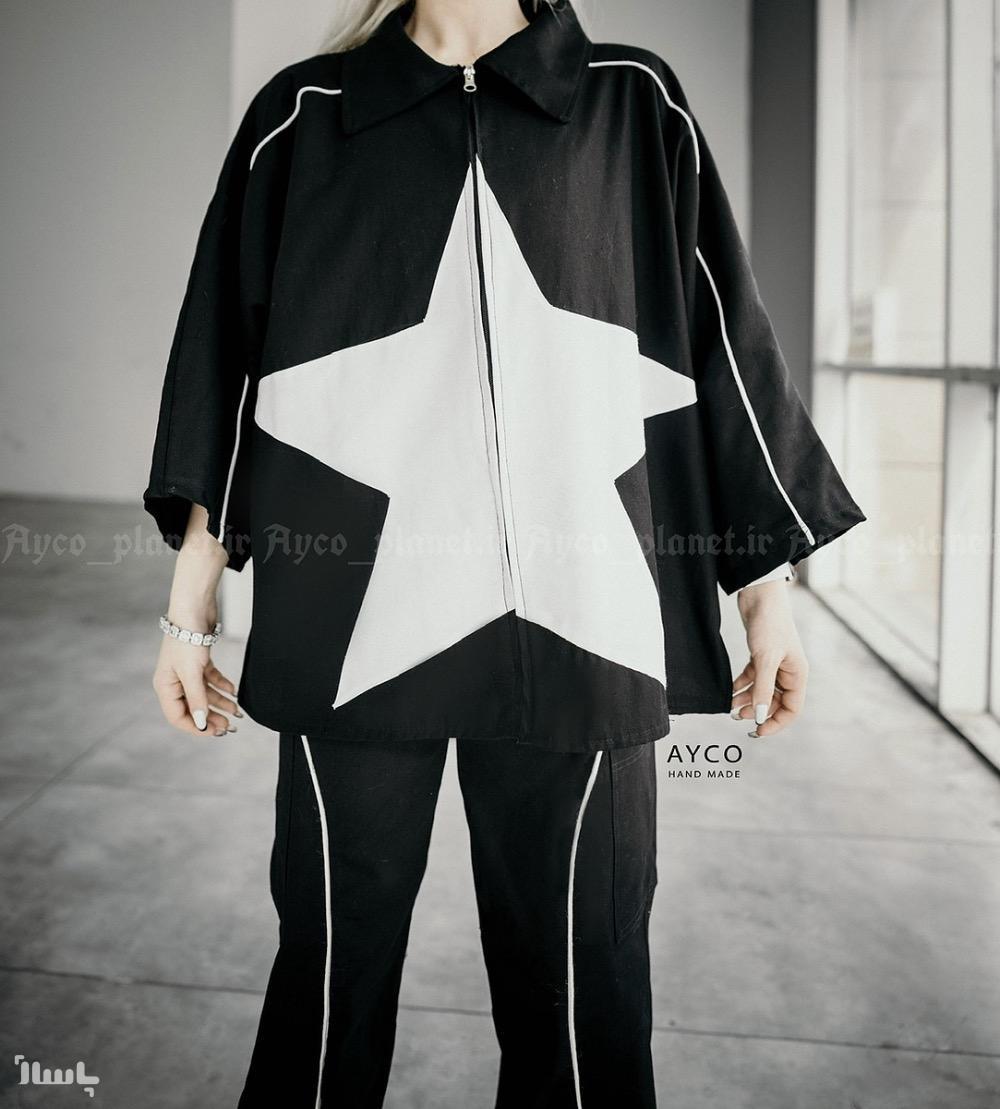 کت ستاره جلو زیپدار آستین سه ربع بهمراه شلوار مغزی دوزی جنس کتان عالی