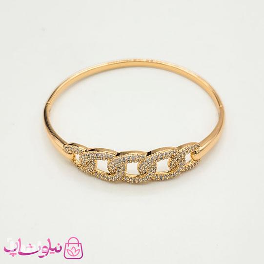 خرید دستبند النگویی زنانه ژوپینگ طلایی نگیندار سایز 3