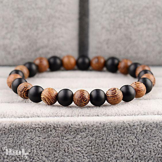 دستبند سنگ اونیکس و چوب
