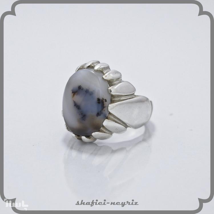 انگشتر نقره مردانه طرح اشکی با سنگ شجر